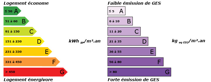 Définition du DPE : C'est l'évaluation de la performance énergétique d'un logement ou d'un bâtiment. Il se traduit par un document qui comporte des informations sur la consommation d'énergie du bâtiment sur le recours aux énergies renouvelables et sur les émissions de gaz à effet de serre (CO2) ainsi que des recommandations et préconisations pour réduire cette consommation. Le DPE se caractérise notamment par 2 étiquettes (énergie et gaz à effet de serre).
